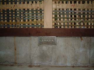 | 土台の下には、これだけのコンクリート製の基礎が打たれています。各部屋へは大きめの開口部が開けられています。この穴により床下も各部屋へ行き来できる事が出来、メンテナンスの面も安心、そして空気が各部屋の床下を通り通気もバッチリです。 | 床下と外とは、この換気口で空気が通うようになっています。これなら猫やネズミが外から入ることは無いでしょうね。 | |||||||||||
